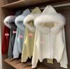 Cárdigan de Punto Grueso con Capucha y Cuello Grande de Piel para Mujer, Holgado y de Moda, Chaqueta Casual Suave y Elegante, Suministro Directo Transfronterizo