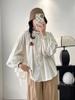 Camisa de Algodón de Cuello Mao Estilo Japonés para Mujer Otoño 2025 Holgada Versátil Dulce Juvenil Manga Linterna Top para Mujer