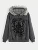 Al por mayor Europeo y Americano Sudadera con Cremallera Estampada Cuello de Piel con Ins Hoodie de Calle Chaqueta Retro Calle de Moda Y2K