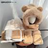 Conjunto de Tres Piezas de Bufanda, Gorro y Guantes de Oso de Peluche para Niñas Estilo Coreano Lindo Otoño e Invierno Cálido Bufanda y Gorro Todo en Uno
