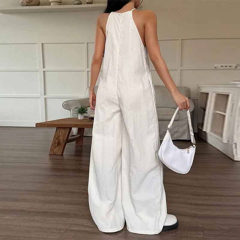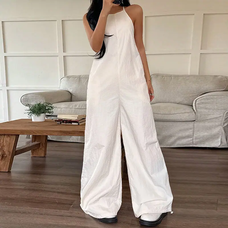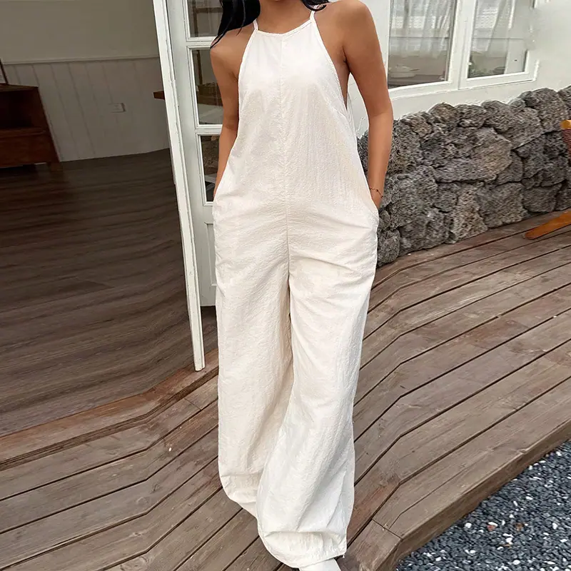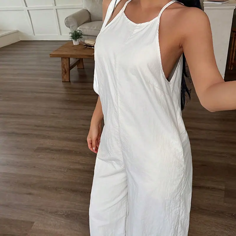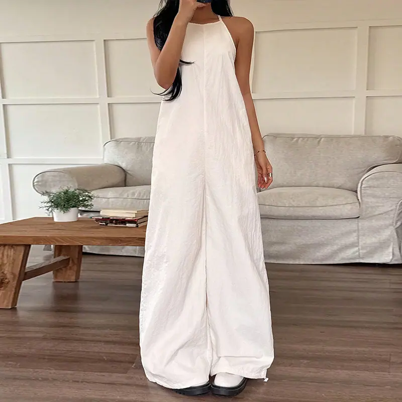 Moda Transfronteriza Europea y Americana Elegante Mono Largo Básico Simple Casual Holgado de Tirantes de Color Sólido para Mujer