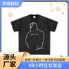 Hip-hop Europeo y Americano Camiseta Simple Estampada de Manga Corta Algodón Lavado Vintage Cuello Redondo Holgada