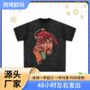 Camiseta de Manga Corta Estampada TUPAC Retro Americano Europeo Hip Hop Lavada Holgada Cuello Redondo