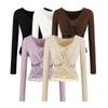Compra Top Sexy Puro Deseo de Escote en V Profundo para Mujer Otoño/Invierno 2025 Camiseta Base de Encaje Retorcido con un Toque de Alta Gama al por mayor en Joom.pro