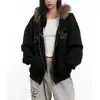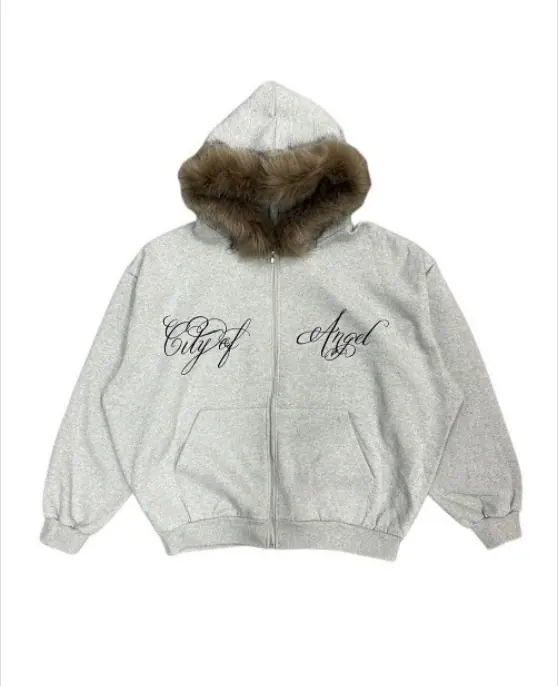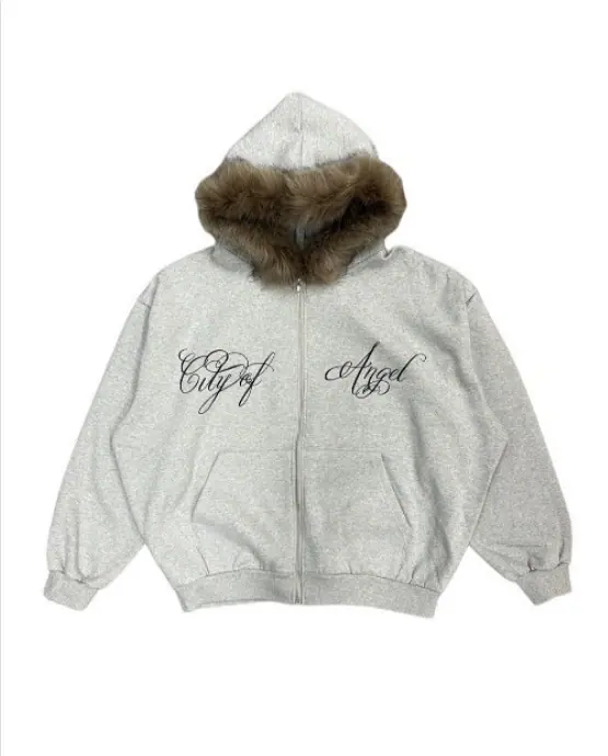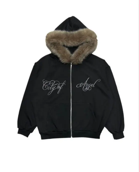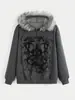 Estilo Europeo y Americano Otoño/Invierno Ins Cuello de Piel Estampado Dulce Sudadera con Capucha y Cremallera Manga Larga Sudadera con Capucha Chaqueta Vintage Tendencia Urbana