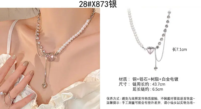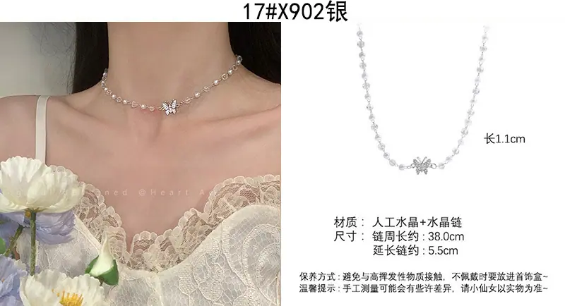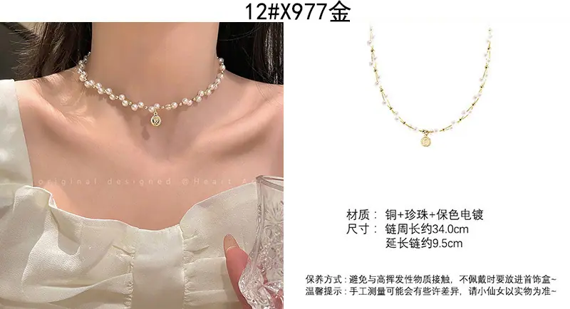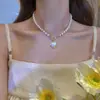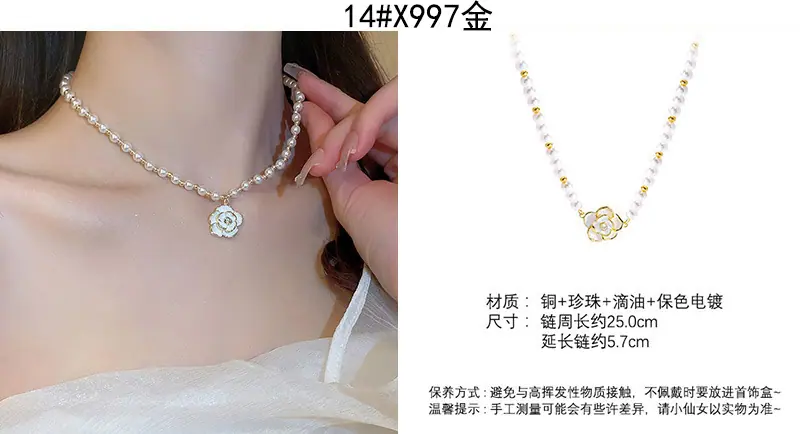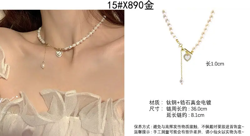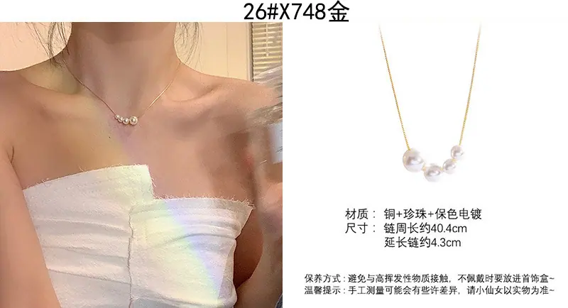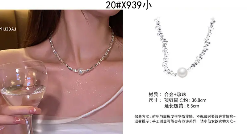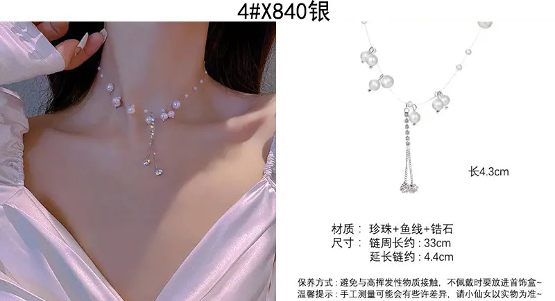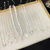 Collar de acero de titanio de lujo ligero de alta gama para mujer, diseño de nicho, cadena de clavícula de perlas para chica atractiva, accesorios versátiles de moda al por mayor