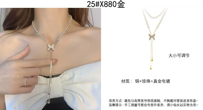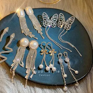 Pendientes de plata s925 con borlas de perlas y aguja para mujer, aretes largos de mariposa de alta gama, ligeros y lujosos, venta al por mayor