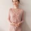 Suéter de Cachemira con Cuello en V para Mujer Chaqueta de Punto Otoño e Invierno Nuevo Hoja Encaje Jacquard Estilo Elegante Corto Ropa Exterior