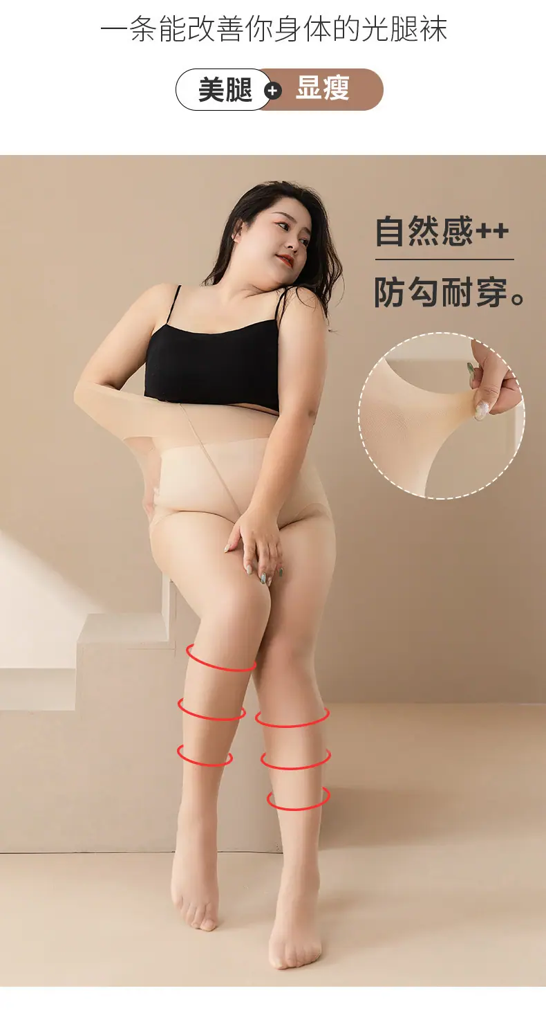 Pantyhoses de Talla Grande para Mujer, Anti-Desgarro, Verano Delgados Largos Color Negro Nude