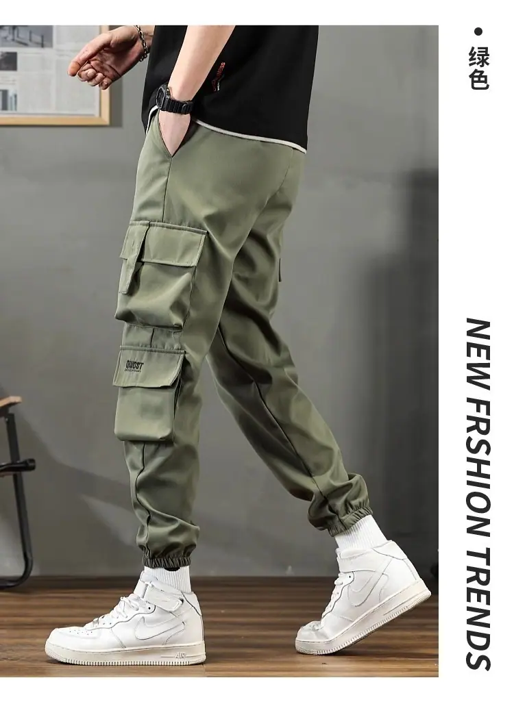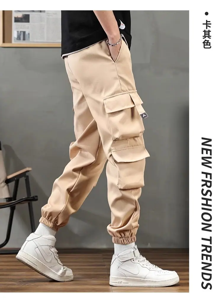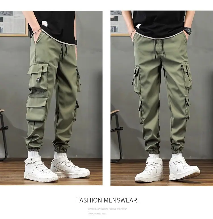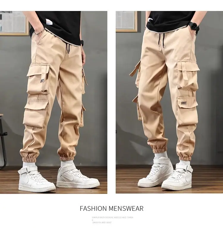 Pantalones cargo para hombre marca de moda holgados multibolsillos ropa de trabajo duradera pantalones de trabajo talla extra modernos versátiles con puño pantalones casuales