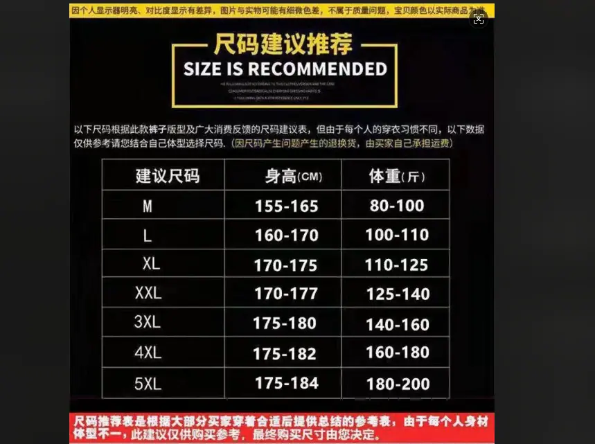 M, L, XL, XXL, 3XL, 4XL, 5XL