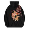Sudadera con Capucha de Peso Pesado Bordada con Carpas Koi para Hombre, Estilo Chino Manga Larga Retro Holgada Casual con Adornos Adicionales