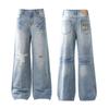 Jeans de mezclilla lavada retro de diseño único para hombre, estilo americano de alta calle, pantalones sueltos de talle alto con caída y pierna ancha hasta el suelo