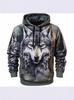 Sudadera con Capucha para Hombre con Estampado de Lobo, Moda Deportiva Casual Versátil Cómoda Holgada Teum Estación Independiente Transfronterizo