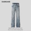 Jeans azul claro de calle de estilo americano lavado cleanfit Slim-fit Adelgazantes Sueltos Micro-lar
