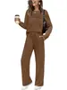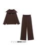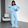 Conjunto de Otoño Nuevo 2025 Europeo y Americano Transfronterizo para Mujer Top de Manga Larga con Cuello Redondo Casual Pantalones Largos de Cintura Elástica Pantalones de Pierna Ancha