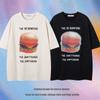 Tkpa Marca Americana Trendy Camiseta Elegante de Algodón Suelta de Manga Corta con Estampado de Coma Algodón Trendy Nacional Top de Media Manga para Pareja