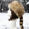 Sombrero Redondo Plano de Otoño e Invierno Piel Sintética Piel Rusa Cálido Cola de Mapache Color Hierba Sombrero Étnico de Tíbet Protección para Orejas