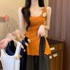 Verano Nuevo Diseño de Flor Tridimensional Camisola de Punto Dividida para Mujer Dulce Ajustada Adelgazante Top sin Mangas