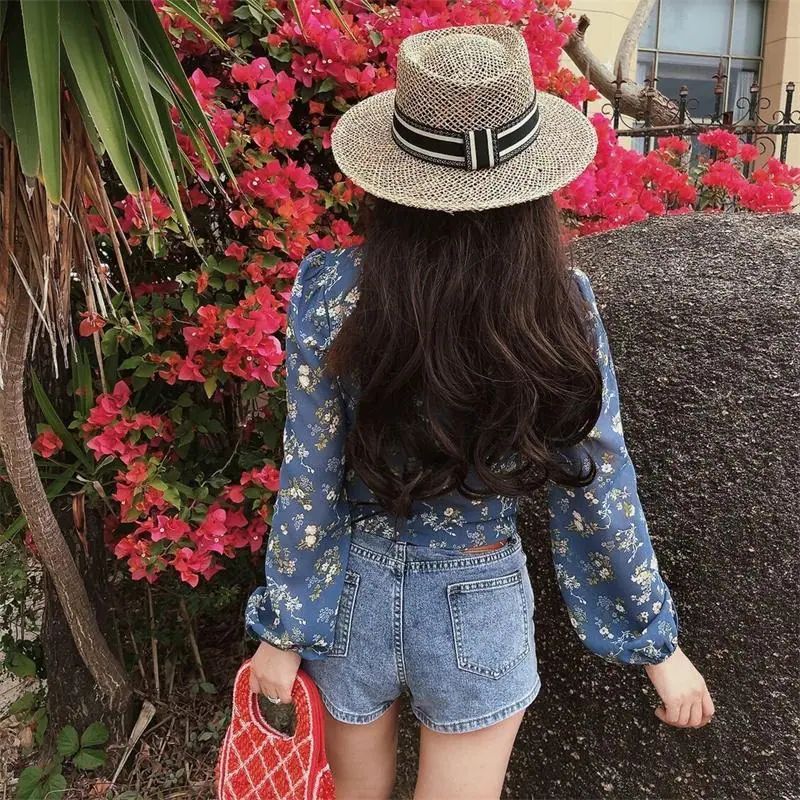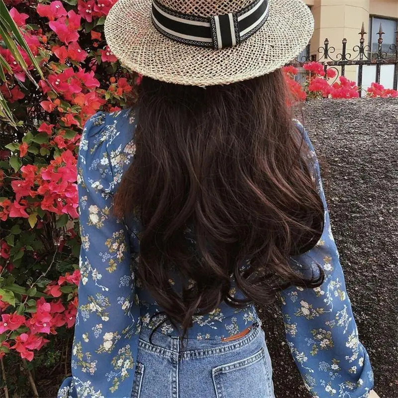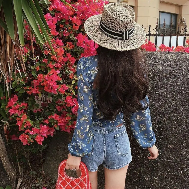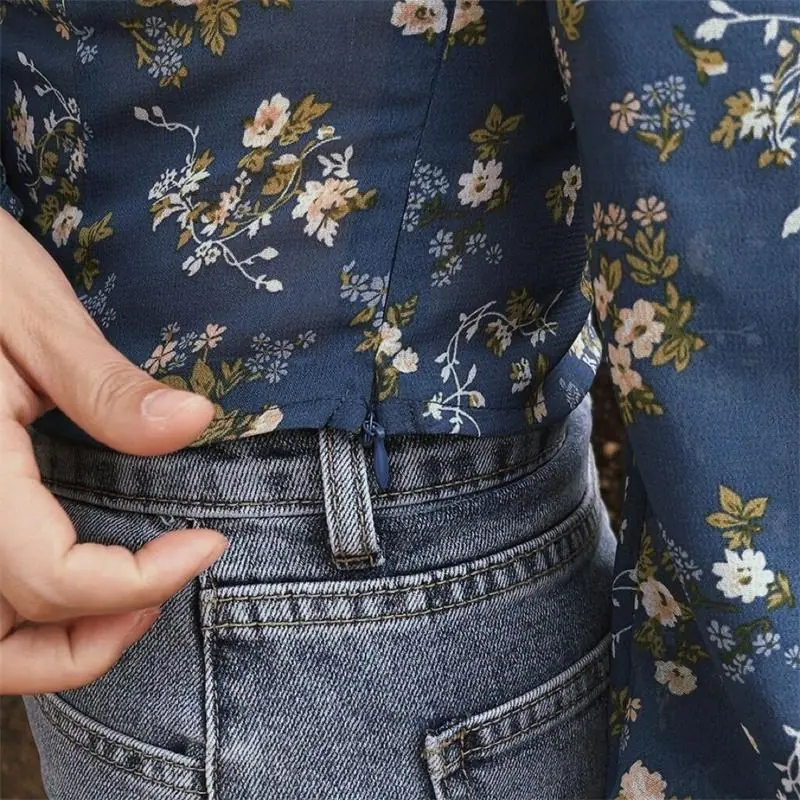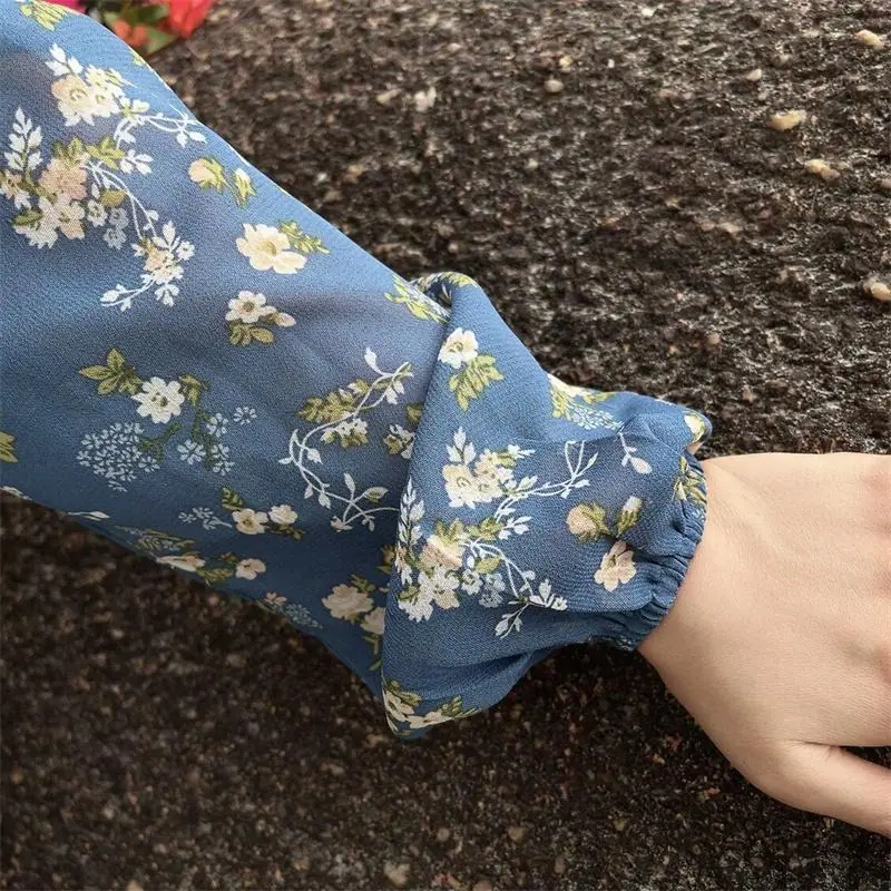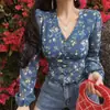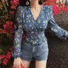 Blusa de gasa retro francesa para mujer 2025 primavera nuevo diseño nicho cuello en V adelgazante manga larga top estampado