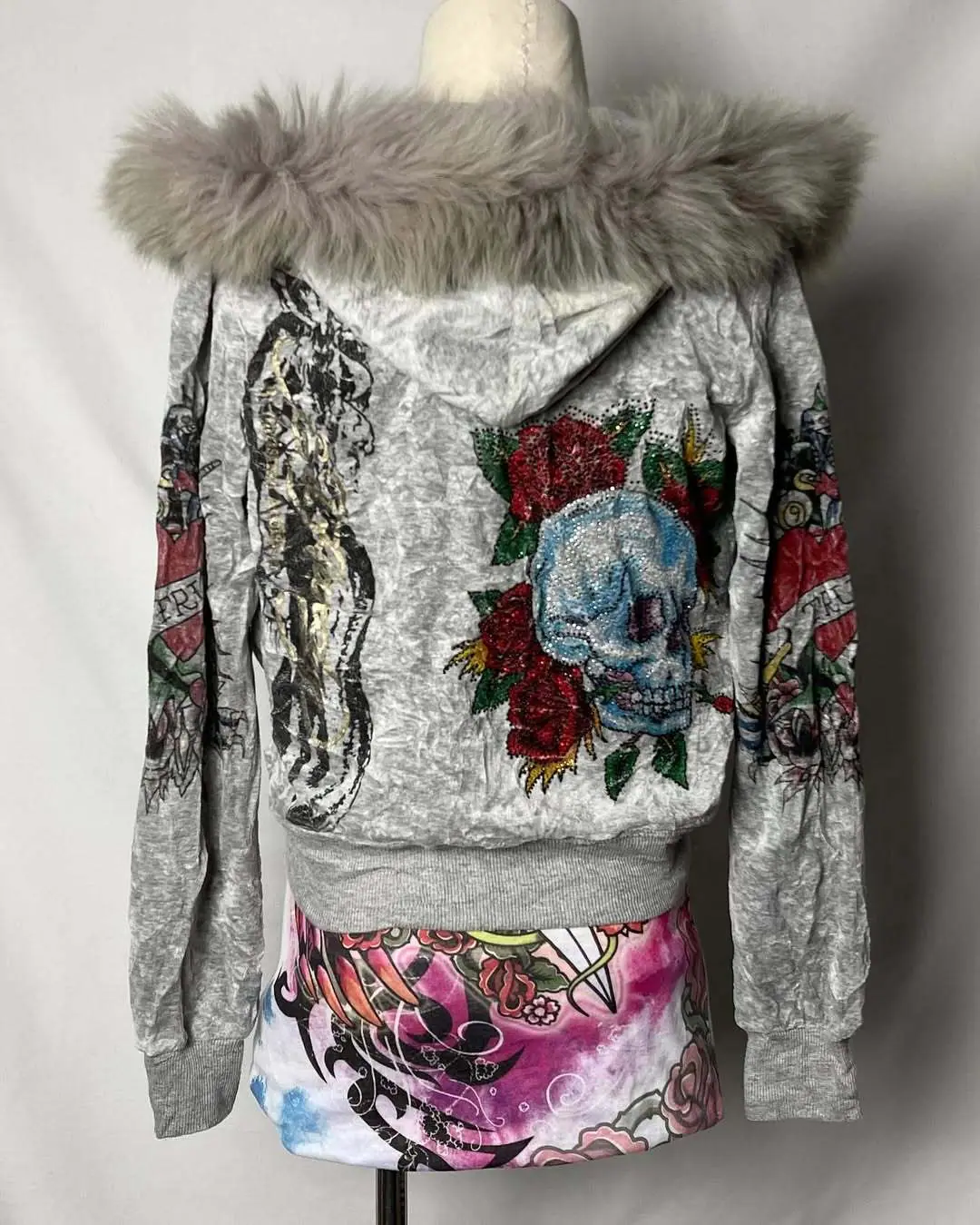 Moda nueva de otoño e invierno europea y americana, tendencia retro, Harajuku ins, sudadera con capucha con cremallera estampada de alta calle, ropa Y2k