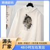 Wish eaby comercio exterior ropa de mujer europea y americana estampado de gato mochila cuello suéter forrado de polar para estudiantes