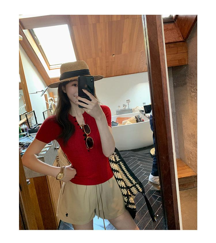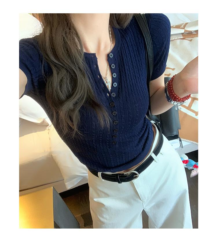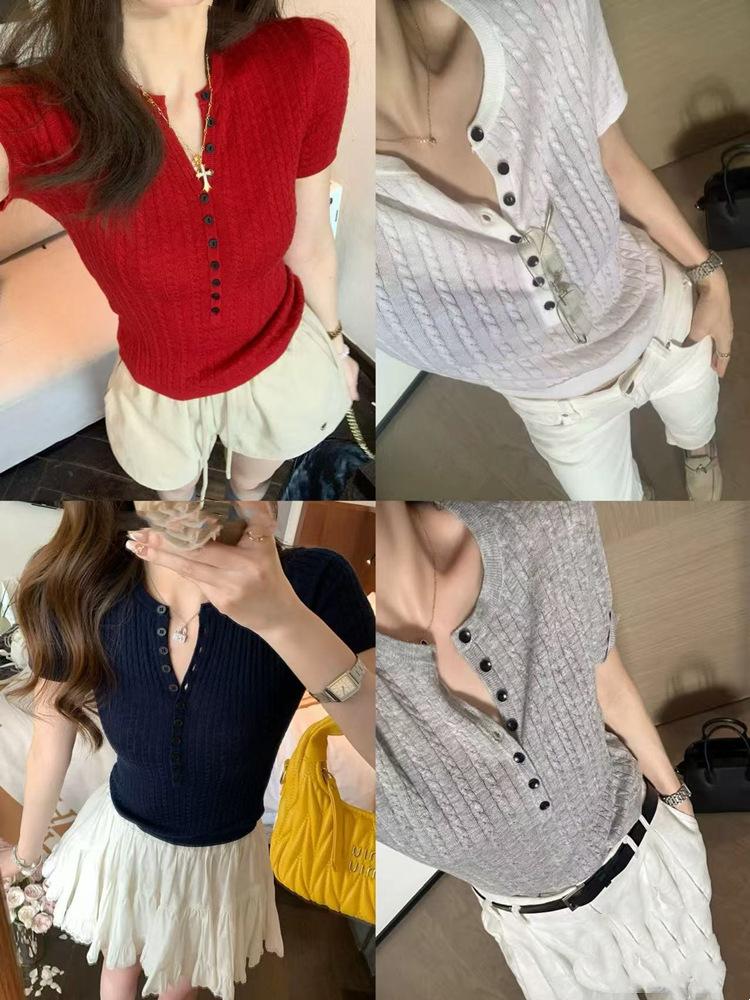 Compra Suéter de Manga Corta para Chica Hot para Mujer Nuevo Verano Adelgazante Camiseta Básica Chic Retro Top Corto al por mayor en Joom.pro