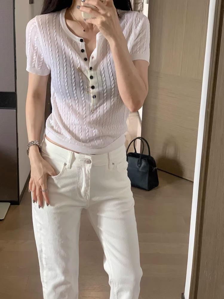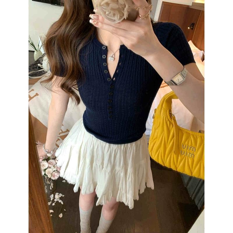 Suéter de Manga Corta para Chica Hot para Mujer Nuevo Verano Adelgazante Camiseta Básica Chic Retro Top Corto