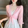 Blusa de Gasa con Falda de Tirantes, Chal Delgado, Cárdigan, Top de Protección Solar para Mujer, Nueva Ropa Exterior de Verano 2025