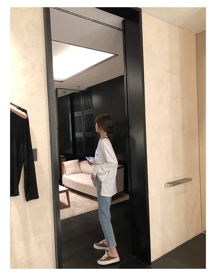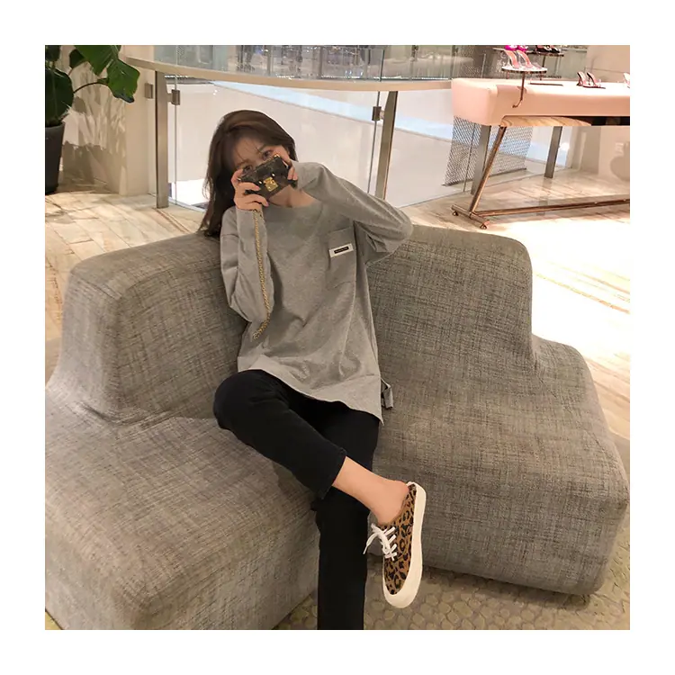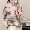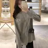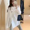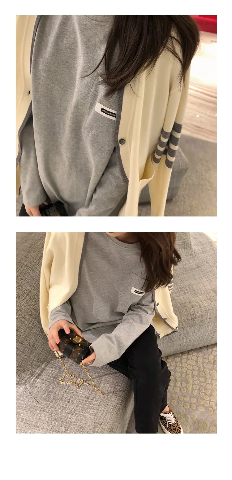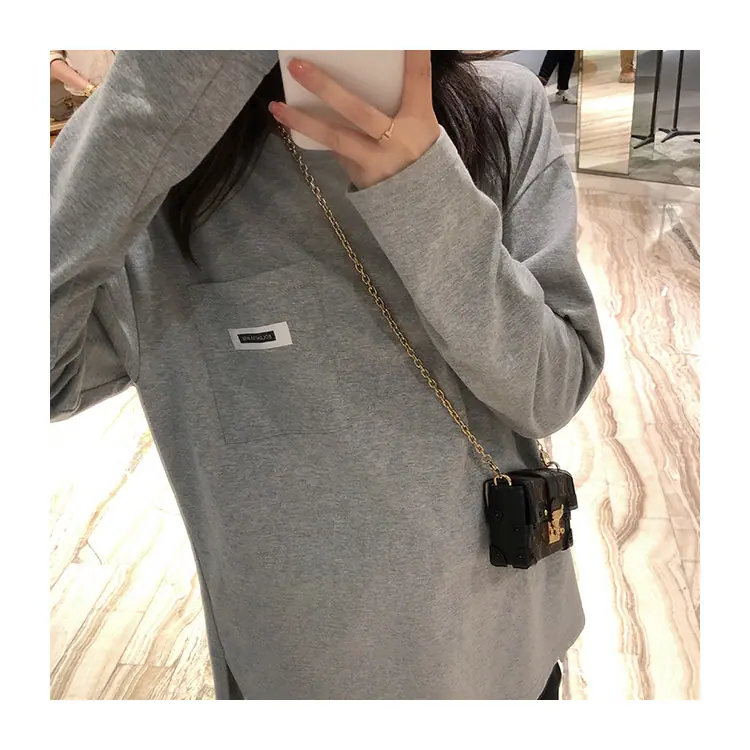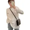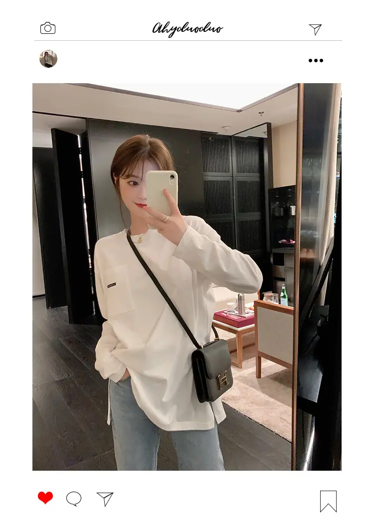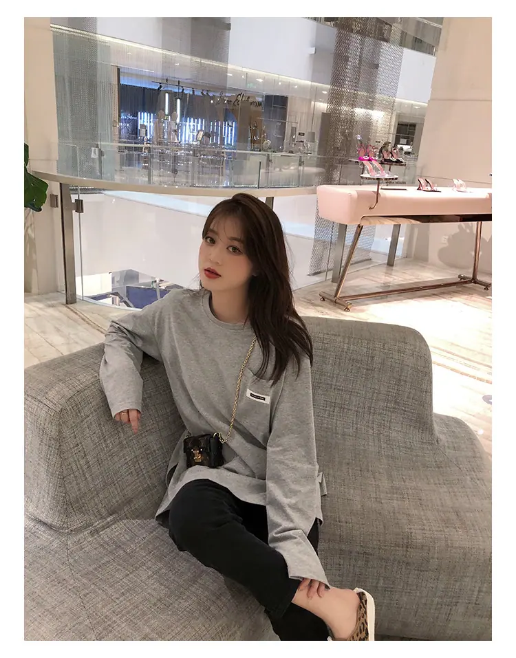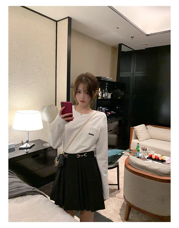 2025 Principios de Otoño Nuevo Blanco Abertura Base Camisa Ropa Interior de Mujer Largo Medio Algodón Bolsillo Reductor de Edad Camiseta de Manga Larga ins