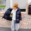 Ocho temporadas nuevo oro negro Chaqueta de plumón para niños engrosada cálida con capucha niños y niñas mediana y grande Niños Bebé abrigo corto