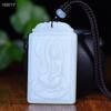 Jade Hetian Natural Auspicioso Marca Guanyin Colgante de Jade Blanco Colgante de Bodhisattva Guanyin de Jade Estatua de Buda Colgante de Jade