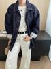 Sinan Estilo Casual y Relajado, Diseño de Costuras en Color Contrastante, Solapa con Bolsillo Grande Chaqueta de Mezclilla Suelta Sn8181