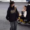 Sudadera con Capucha Negra para Mujer 2025 Nueva Popular Holgada Otoño e Invierno Ropa Exterior Forrada de Polar Engrosada de Moda Versátil Top
