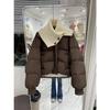Chaqueta Corta de Algodón para Mujer 2026 Nueva Invierno Solapa Tejida Patchwork Ajuste Holgado Petite Acolchada Gruesa Trendy