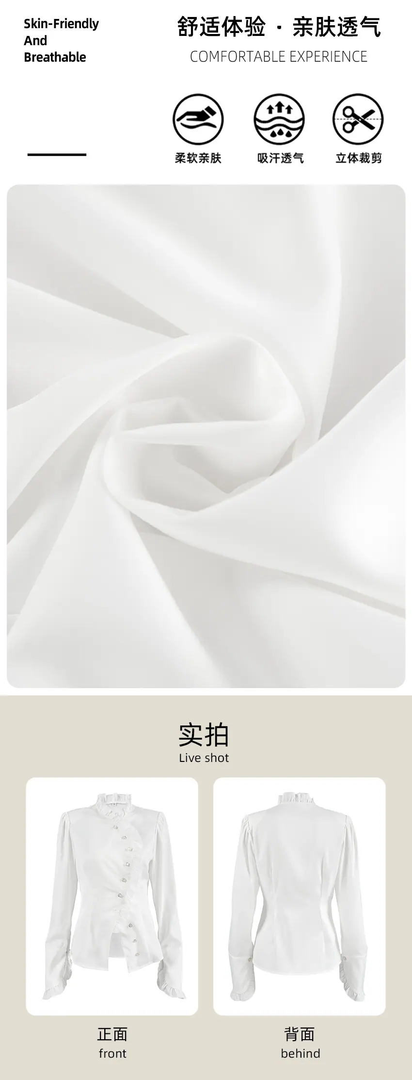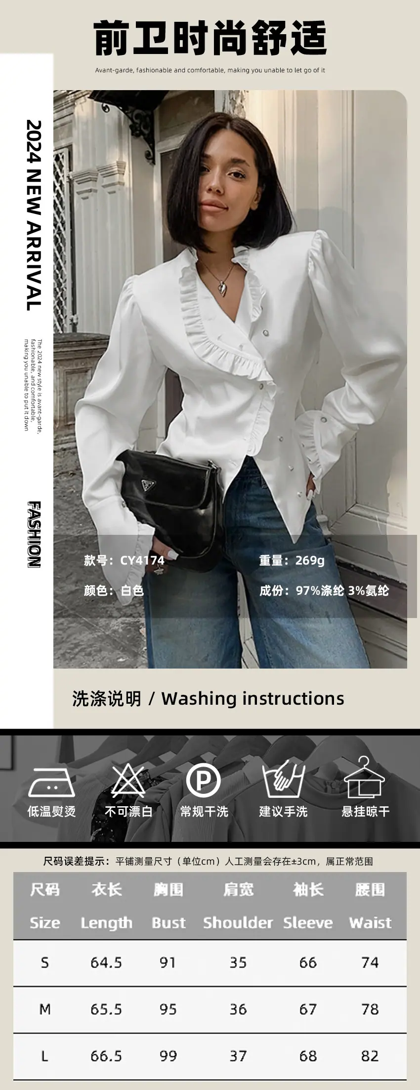White, Composition: 97% polyester 3% spandex, Weight: 269g, Spot goods