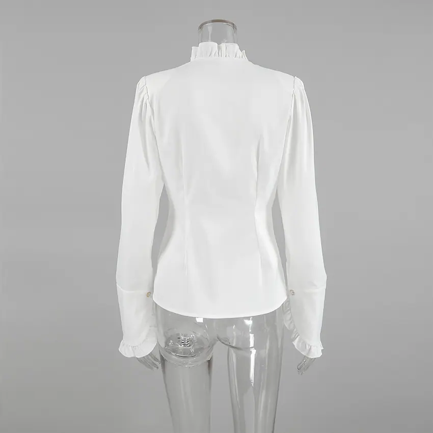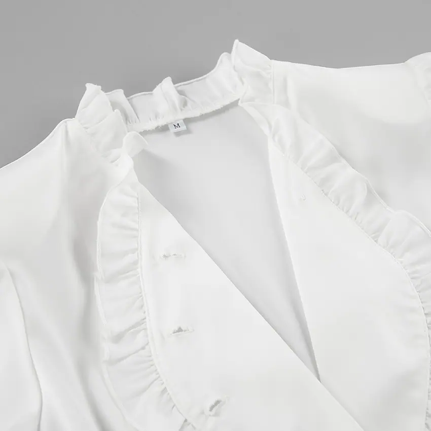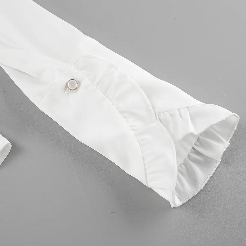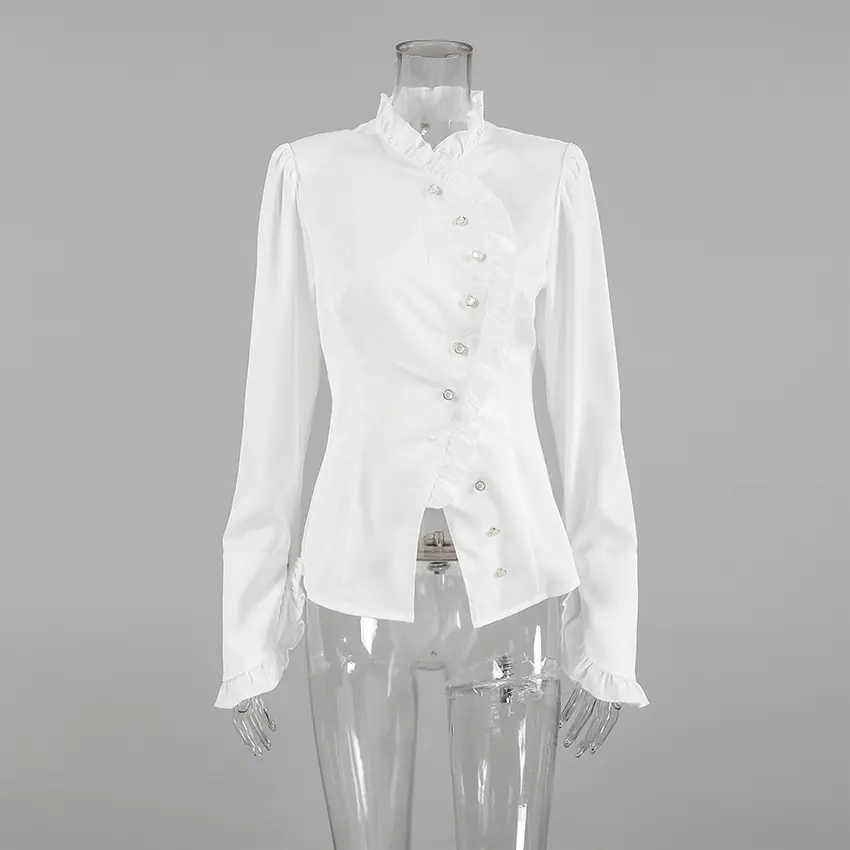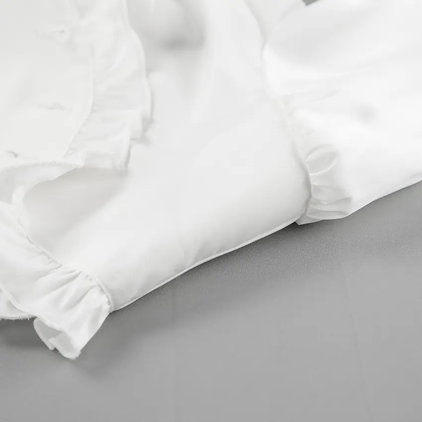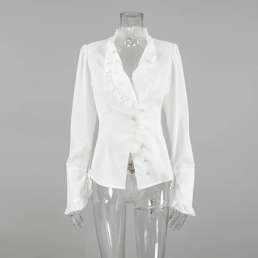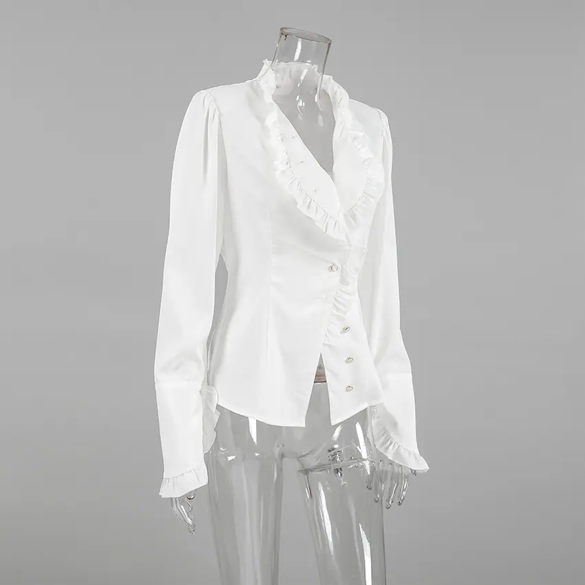 Camisa de satén con volantes transfronteriza europea y americana Otoño 2025 Temperamento Ropa interior Adelgazante Top de encaje blanco Ropa de mujer