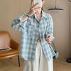 2025 Nuevo Verano Estilo Coreano Holgado Adelgazante Diseño Nicho Camisa a Cuadros para Mujer Top de Algodón de Manga Larga Camisa Protectora del Sol