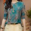 Camiseta de Fondo de Moda de Alta Calidad que Reduce la Edad para Mujer Primavera y Otoño Nueva Camiseta Slim Camiseta de Cuello Redondo Top de Malla de Doble Capa