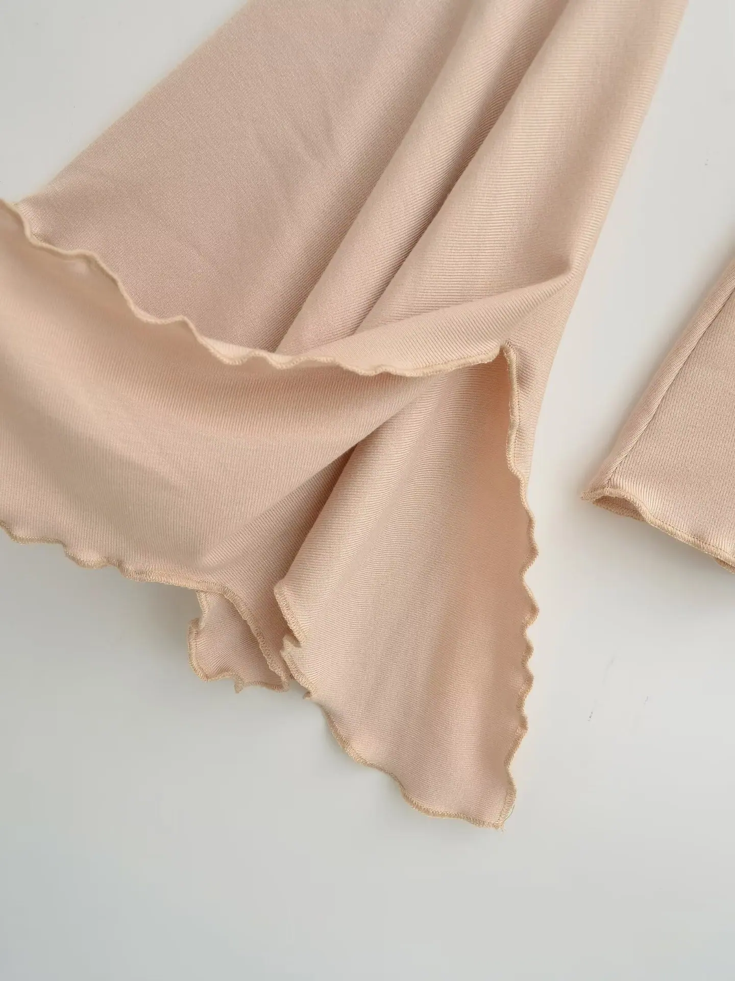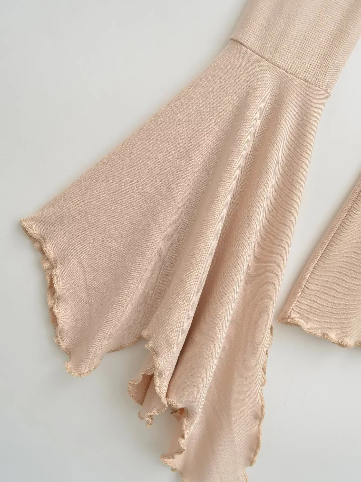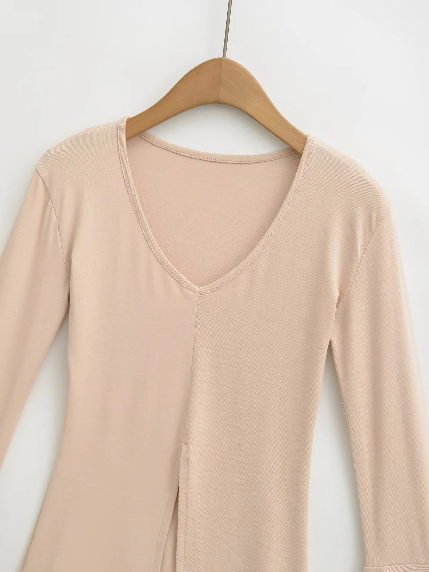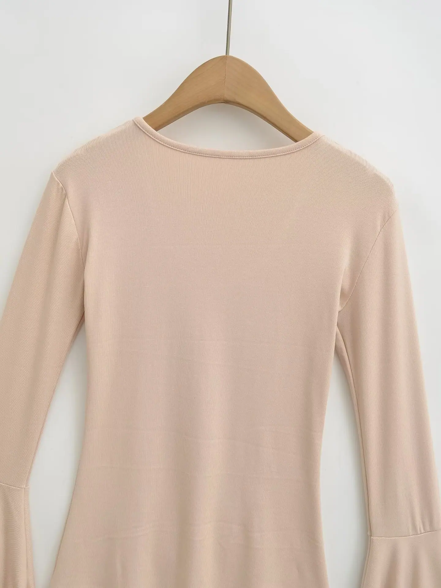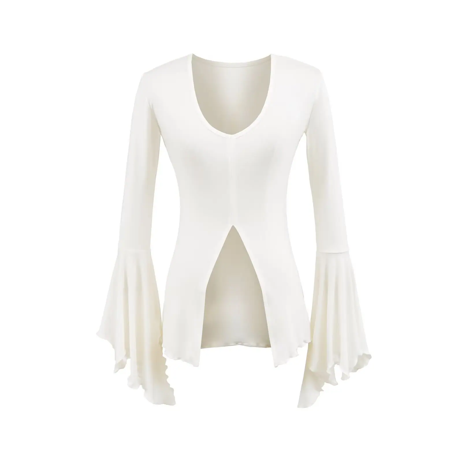 Suéter de Punto con Cuello en V para Chica Picante Americana Manga Acampanada Manga Larga Camiseta para Mujer Otoño Nuevo Adelgazante Diseño con Abertura Sentido Camisa Básica