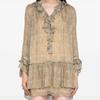 Vestido Suelto de Manga Larga con Estampado Floral y Volantes, Cuello en V de Color Puro, Estilo Hada, Nuevo Otoño 2025 para Mujer