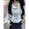 Camiseta de Manga Larga con Botón Nicho de Sentido del Diseño para Mujer Primavera y Otoño Ropa Interior Top Corto Adelgazante