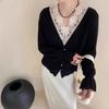 Compra Top Holgazán con Empalme de Encaje Diseño de Cuello en V Cárdigan de Punto de Manga Larga Estilo Suave Rejuvenecedor Estilo Otoño Prenda Base al por mayor en Joom.pro