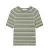 Exportación Transfronteriza Ropa de Mujer Otoño 2025 Estilo Europeo y Americano Cuello Redondo Manga Corta Rayas Caladas Prendas de Punto para Mujer A36675