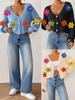 Ropa Europea y Americana para Mujer Transfronteriza Otoño e Invierno Nuevos Productos Bordado Tridimensional Patchwork de Flores de Colores Cárdigan Suéter Abrigo Corto para Mujer