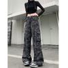 Pantalones Cargo Camuflaje Americano para Mujer, Primavera y Verano Chica Caliente Nuevo Retro Cintura Alta Sueltos Adelgazantes Rectos Pierna Ancha Hasta el Piso