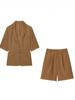 Traje de chaqueta de manga corta para mujer Otoño 2025 al por mayor europeo y americano con cinturón + shorts anchos