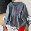 Cárdigan de punto de lana pura 100% con bloques de color de otoño e invierno para mujer, suéter de alta gama con bordado, top casual
