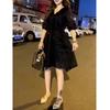 23056 Daaimaiyiyuan 2025 Verano Nuevo Vestido Negro Cuello en V Manga Corta Largo Medio Estilo Coreano Vestido de Mujer