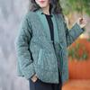 Ropa de Mujer Último Pedido Etiqueta de Corte Estilo Chino Botón Cuello en V Chaqueta Acolchada de Algodón Invierno Estampado Retro Engrosado Cálido Abrigo de Algodón